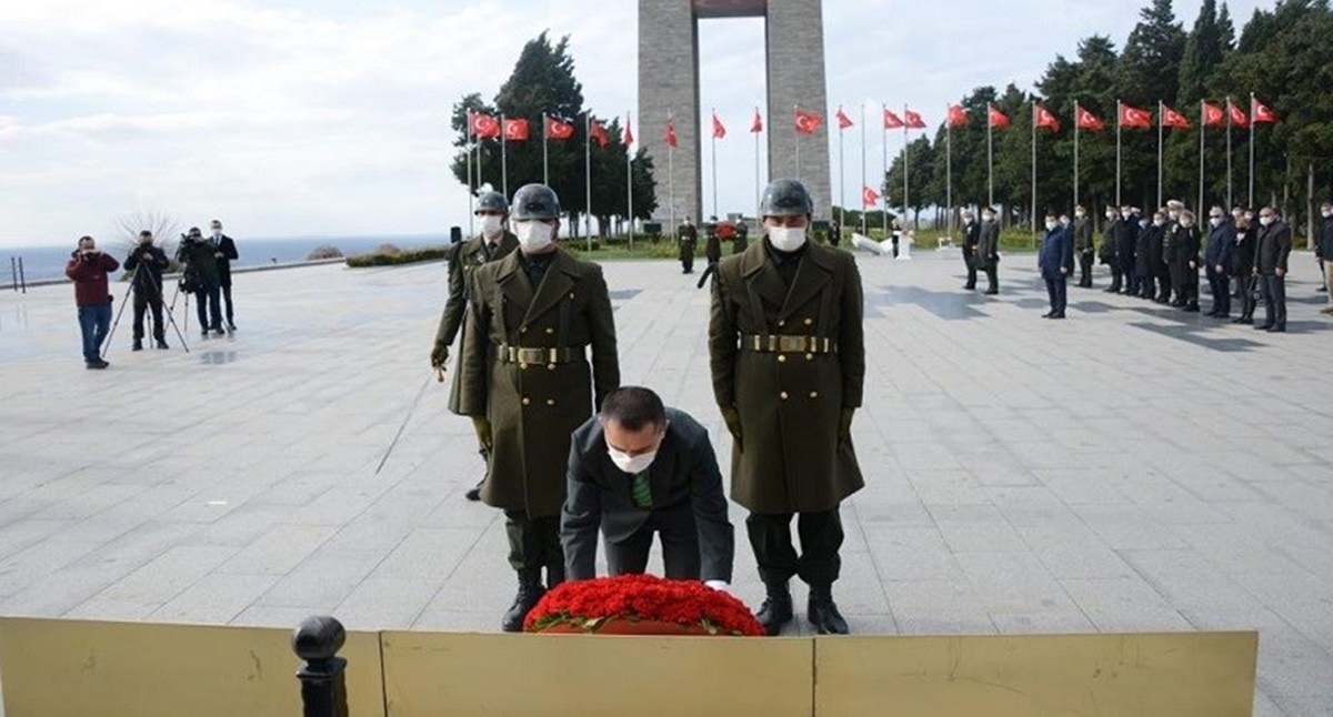 Saygı Duruşu ve İstiklal Marşı ile başlayan törende Vali İlhami Aktaş, 2. Kolordu Komutanı Tümgeneral Mustafa Oğuz ve Çanakkale Savaşları Gelibolu Tarih Alan Başkanı İsmail Kaşdemir tarafından çelenk sunuldu.