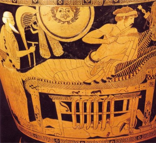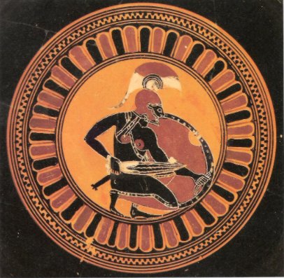 Anlatım bu şekilde uzar gider. İlyada Destanı’nın Antik dönemden itibaren sanata yansımasıyla birlikte Akhilleus da kalkanı ile birlikte seramikler üzerinde resmedilmeye başlanmıştır. Fakat resimlerin çoğunda sol elinde tuttuğu kalkanın iç kısmı resmedilmiştir. Akhilleus’un kalkanının en net şekilde çizildiği resimlerden bir tanesi MÖ 480-475 yıllarına tarihlenen bir hydria üzerinde yer almaktadır. Priamos’un, oğlu Hektor’un cesedini geri almak için Akhilleus’a gelişinin resmedildiği bu sahnede kalkan Akhilleus’un yanı başında asılı durmaktadır.