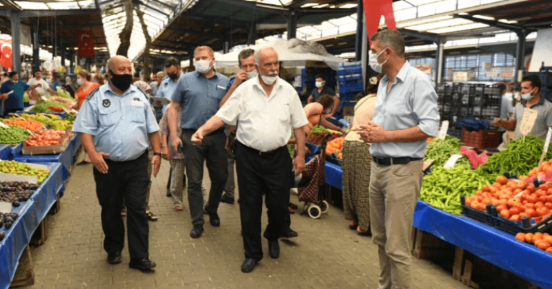 Belediye Başkanı Ülgür Gökhan, denetimli normalleşme kapsamında pazar yerinde alınan önlemleri denetledi.