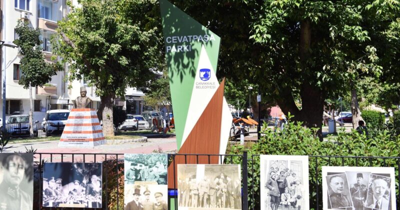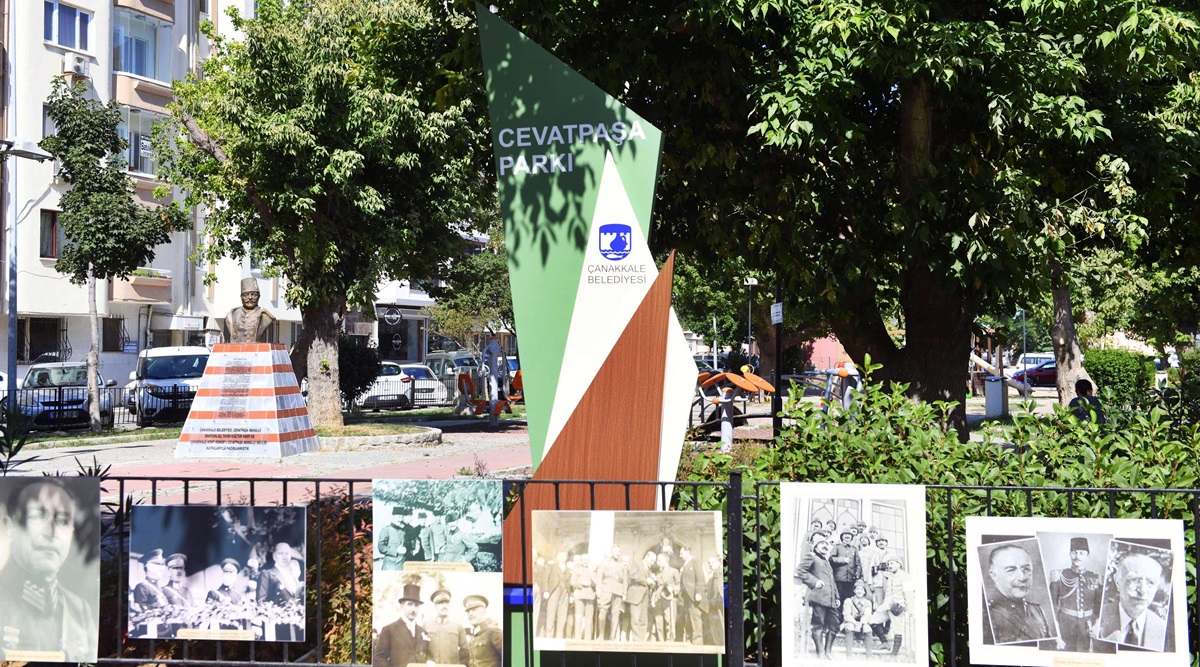 18 Mart kahramanlarından Cevat Çobanlı Paşa’nın fotoğrafları, içerisinde büstünün de yer aldığı ve adının verildiği parkta sergileniyor.