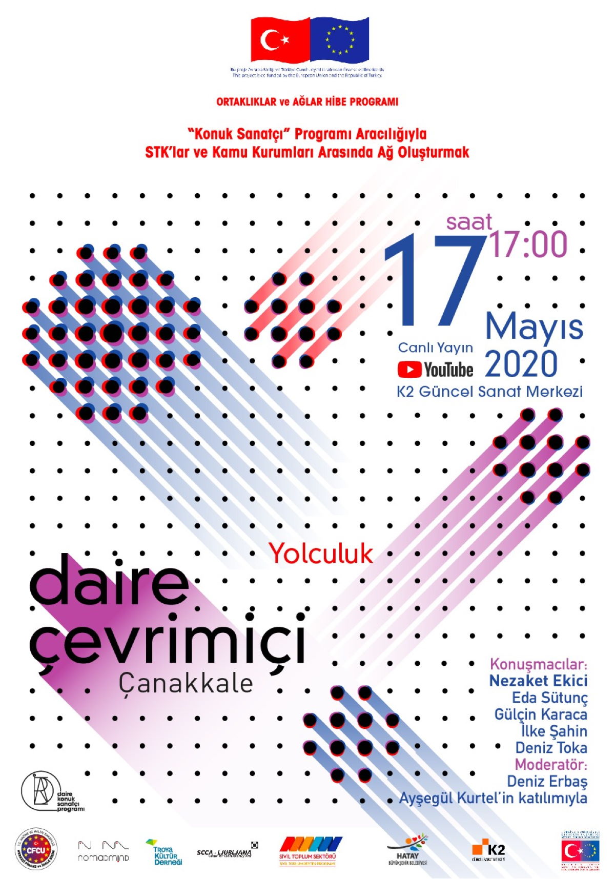 K2 Çağdaş Sanat Derneği’nin koordinatörlüğünde yürütülen “Daire Konuk Sanatçı Programı” projesinin çevrimiçi söyleşi ve sunum serisi “Daire Çevrimiçi”, “Yolculuk” başlıklı canlı yayın ile devam ediyor.