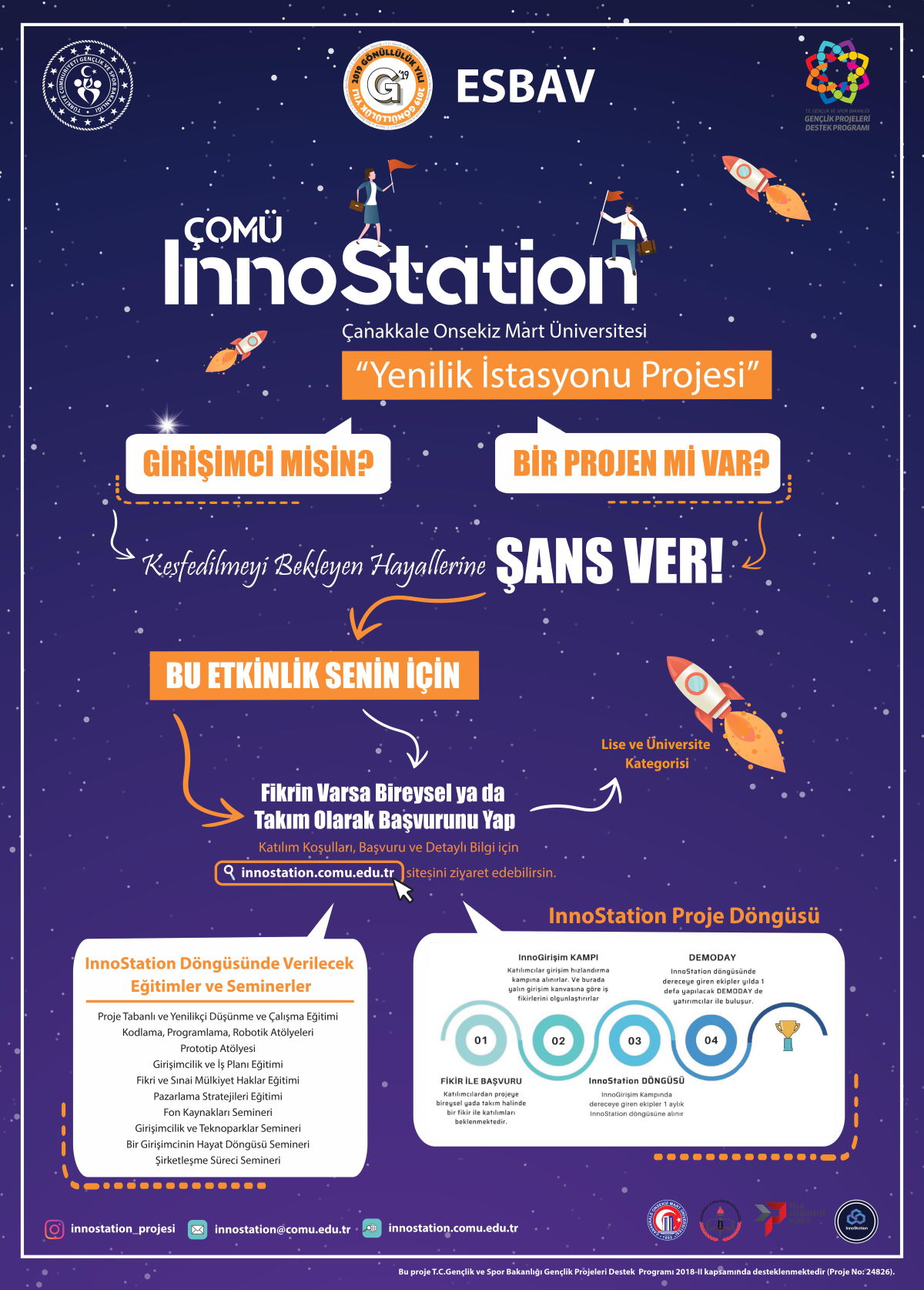 Innostation Projesi hakkındaki detaylara ve katılım koşullarına innostation.comu.edu.tr adresinden ulaşılabilir.