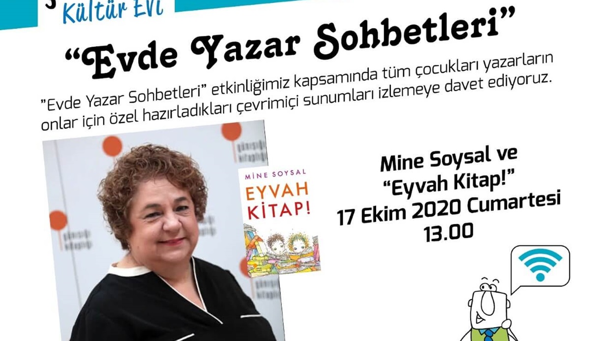 Bu kapsamda 17 Ekim 2020 Cumartesi, saat 13.00’da ”Mine Soysal ve Eyvah Kitap” etkinliği gerçekleştirilecek. Programı Çanakkale Belediyesi Çocuk Kültür Evi sosyal medya hesaplarından takip edebilirsiniz.