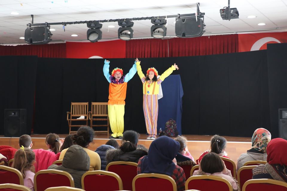 Bayramiç’te sahnelenen çocuk oyunu Palyaçonun Yolculuğu oyunu sona erdi. Bayramiç’te iki gün boyunca toplam 6 seansta oynanan ‘Palyaçonun Yolculuğu’ adlı çocuk oyunu sona erdi. Oyunu kahkahalar atarak seyreden çocuklar, tiyatro gösteriminden sonra hatıra fotoğrafı çektirmeyi ihmal etmedi.