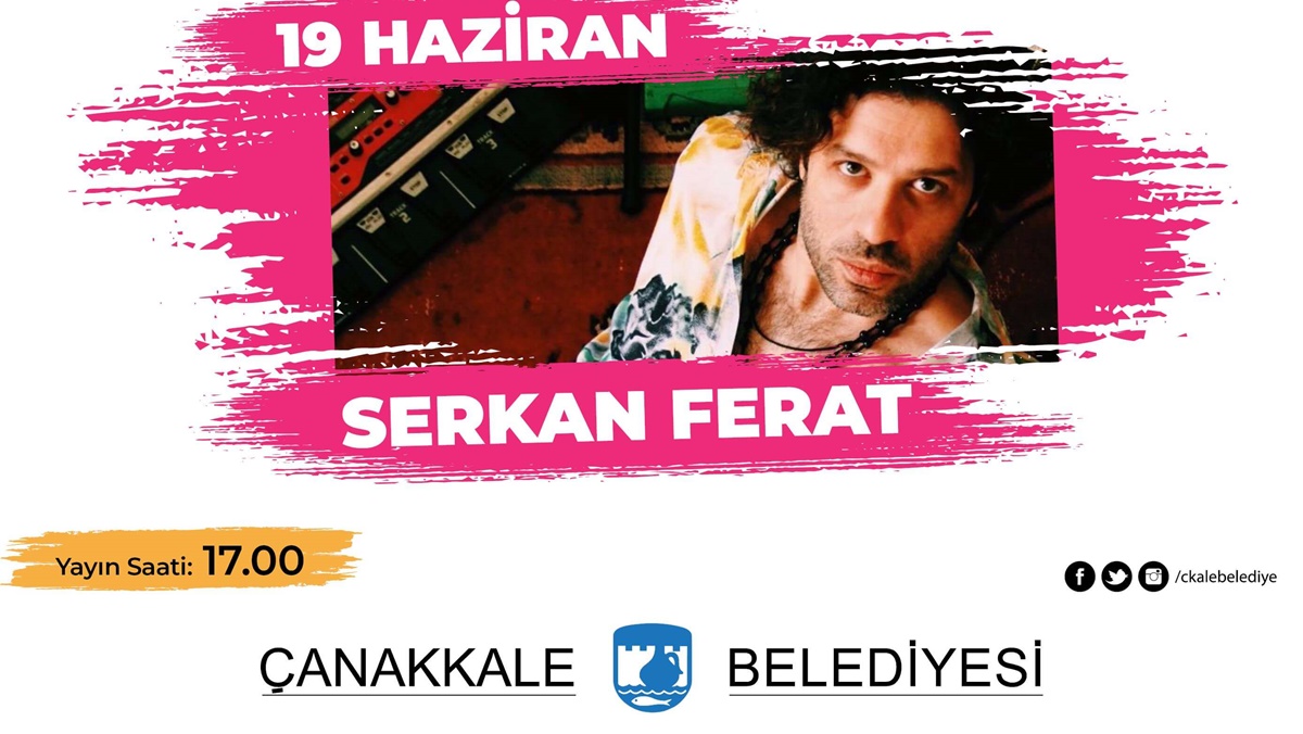 Çanakkale Belediyesi, kentin yetenekli seslerini sosyal medya konserleri aracılığıyla kentlilerle buluşturmaya devam ediyor. Bu kapsamda 19 Haziran 2020 Cuma günü (Yarın) ünlü sanatçı Serkan Ferat evlerimize konuk olacak. Konseri; Çanakkale Belediyesi YouTube ve Facebook hesapları üzerinden saat 17.00 itibariyle izleyebilirsiniz.