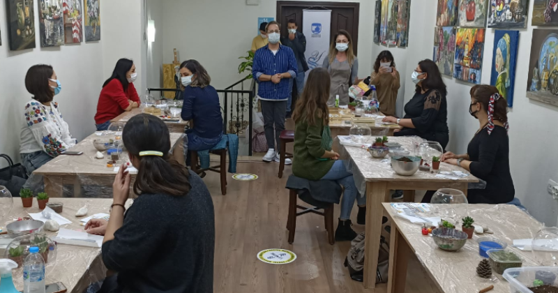 Atölye Günleri’nin ilki olan Teraryum Atölyesi kentlilerin yoğun ilgisi ile Yazar Sanatçı Evi’nde başladı. Pandemi koşulları dikkate alınarak gerçekleşen atölyede; katılımcılar, Eğitmen Yasemin Doryan’dan Teraryum’un inceliklerini öğrendi. Atölye sonunda her katılımcı, kendi el emeği olan Teraryum’unu anı olarak aldı.